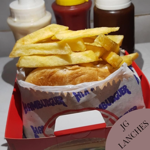 Pão tradicional, carne 56g, alface, tomate e batata.